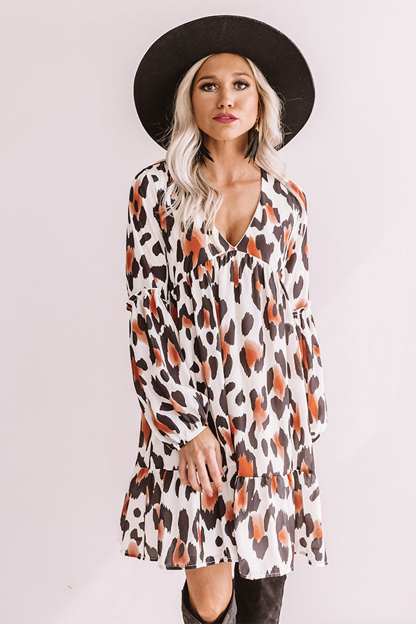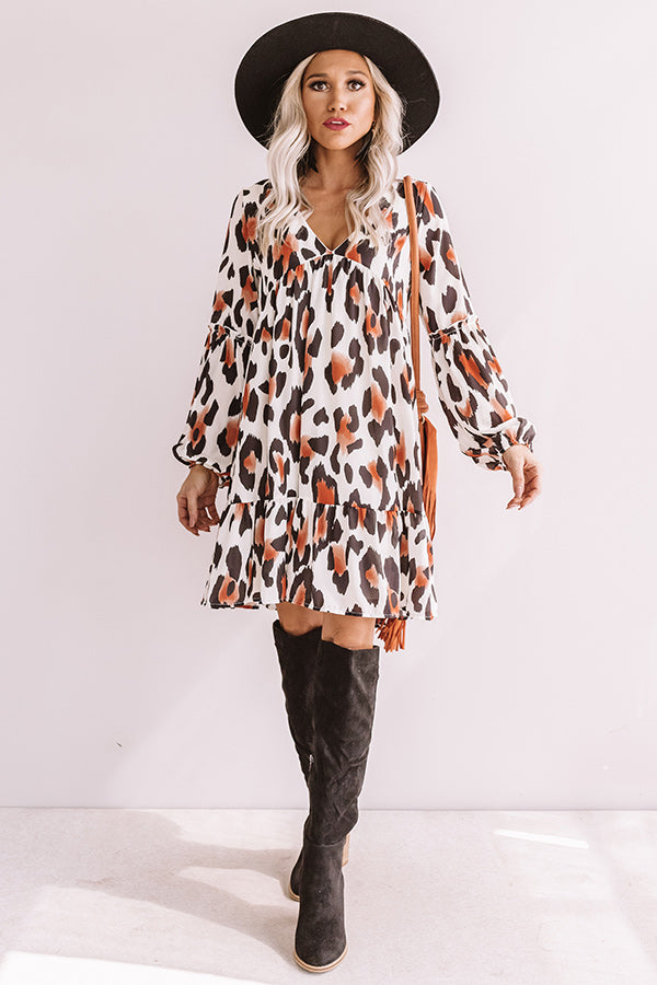 Pumpkin Spice Chic Leopard Babydoll Dress