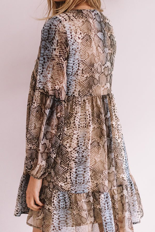 Pumpkin Spice Chic Snake Print Babydoll Dress