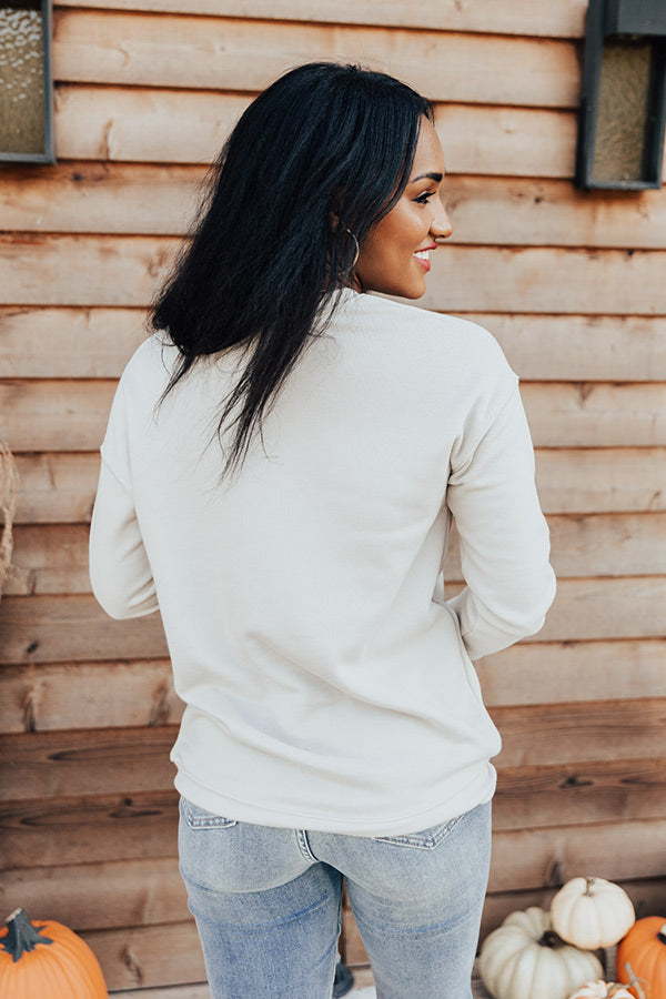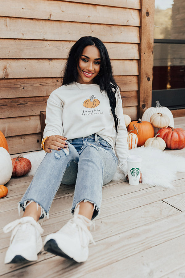 Keep warm and stylish all fall long with our adorable stone hued 'Pumpkin Spice Sweatshirt' featuring soft material with a cute pumpkin spice latte graphic on the front, long loose sleeves with fitted cuffs, a rounded neckline, and a slouched silhouette that ends in a straight hemline!