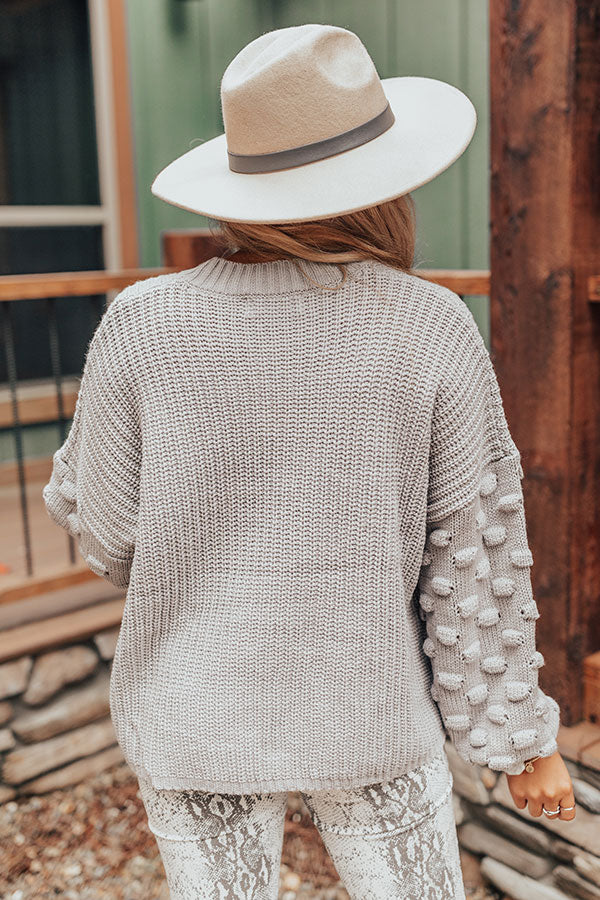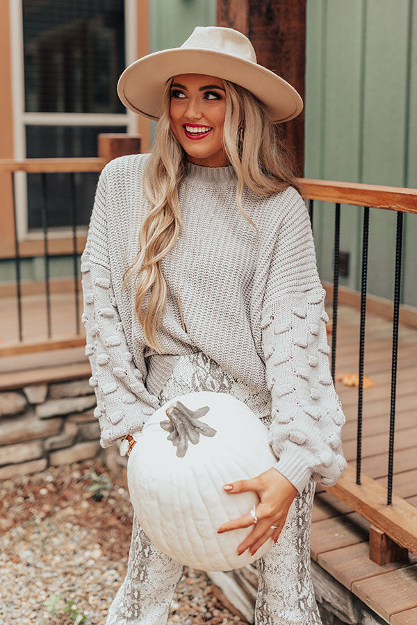 While the weather is cooling down, heat up your style with our adorable grey "Pumpkin Weather" sweater featuring soft and thick tight knit material with vertical ribbed texturing, a high rounded neckline, long oversized bubble sleeves with fitted cuffs and large checkered texturing on the forearms, and a relaxed silhouette that falls into a straight hemline! Measurements