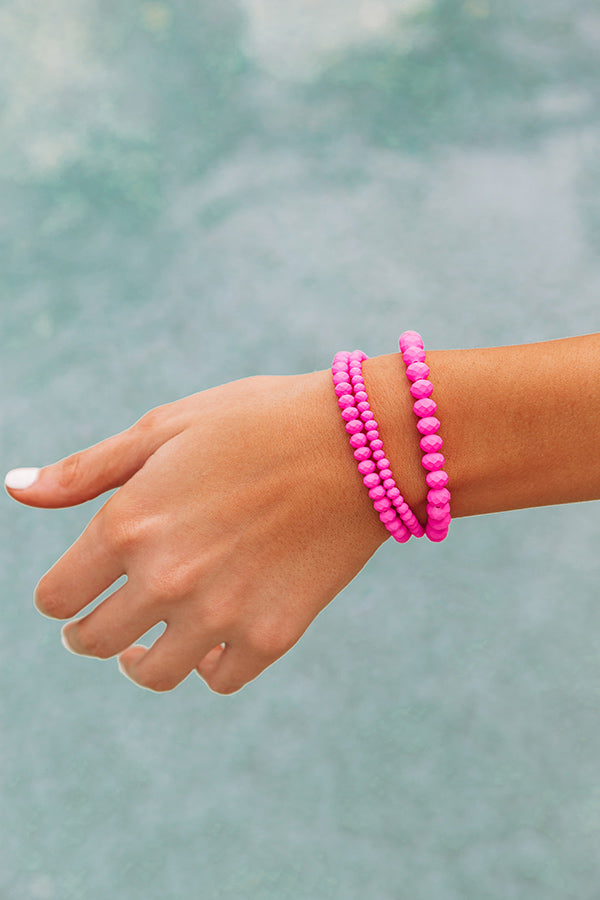 Pure Perfection Semi Precious Bracelet Set In Hot Pink