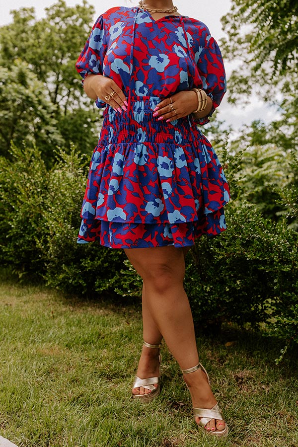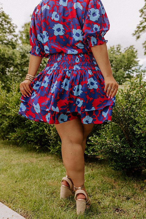 Dance to the beat of your own tune in our darling red plus size 'Put My Song On' skirt featuring lightweight material patterned with a royal blue and airy blue floral print, a wide and high smocked waistline, and a flirty tiered silhouette that falls into a straight upper-thigh length hemline!