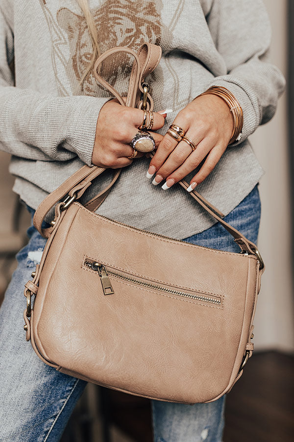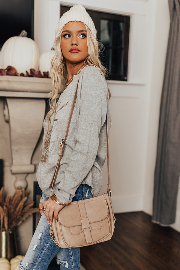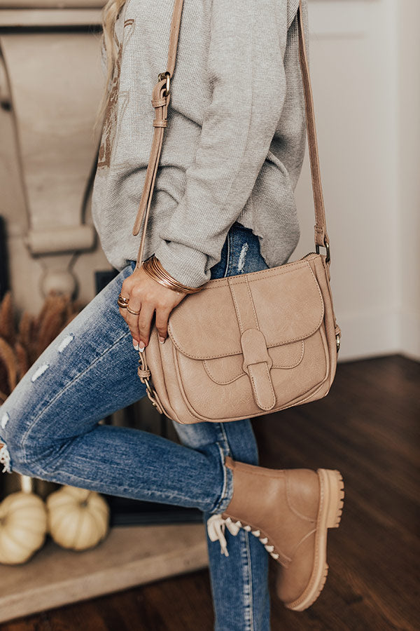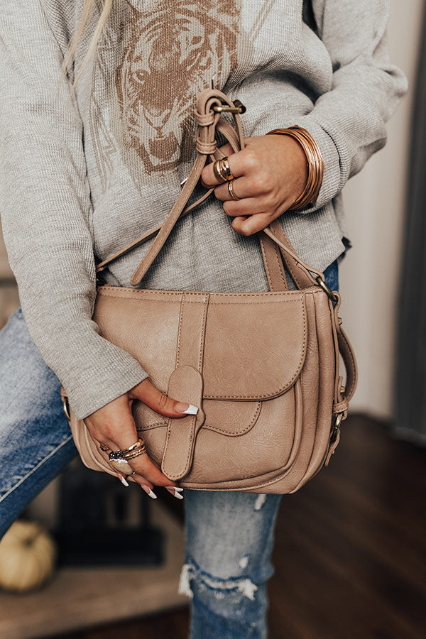 Perfect for wearing with any look, our versatile warm taupe colored 'Put You First' crossbody features faux leather material, a front pocket with a flap closure with a snap button, an adjustable shoulder strap, a zip closure back pocket, and a spacious filly lined pouch with an zip closure and an additional zip closure pocket inside!