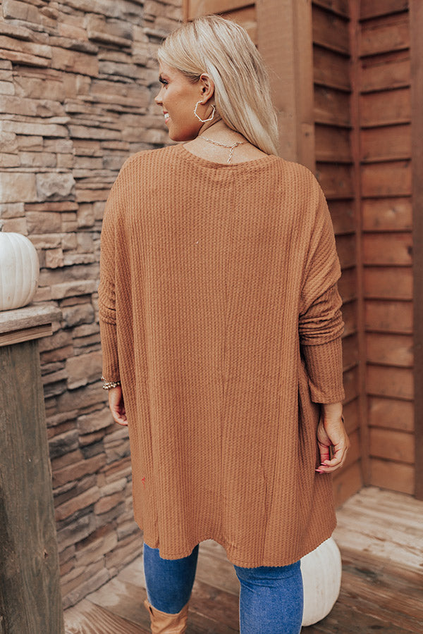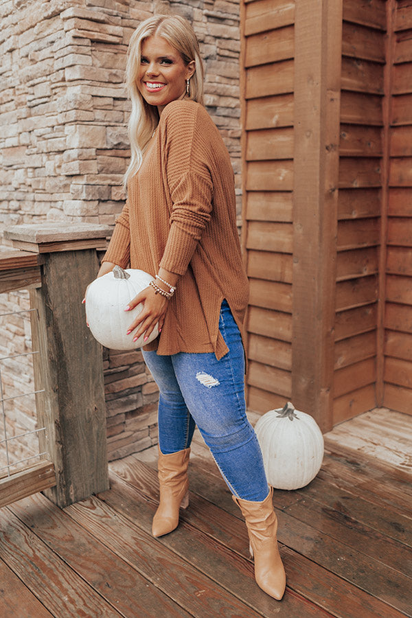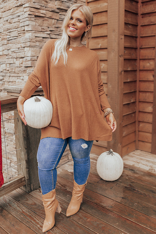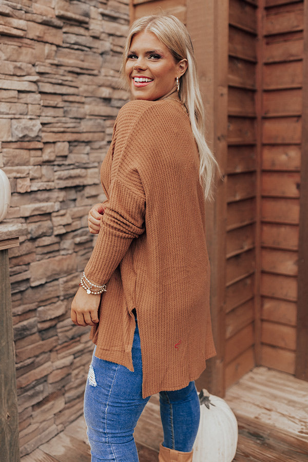 Put You First Waffle Knit Top In Camel Curves