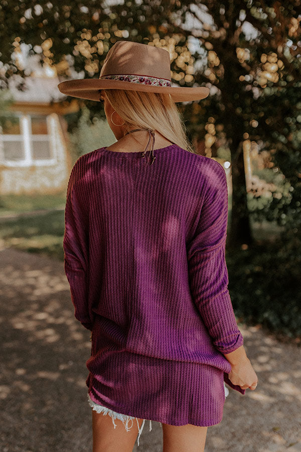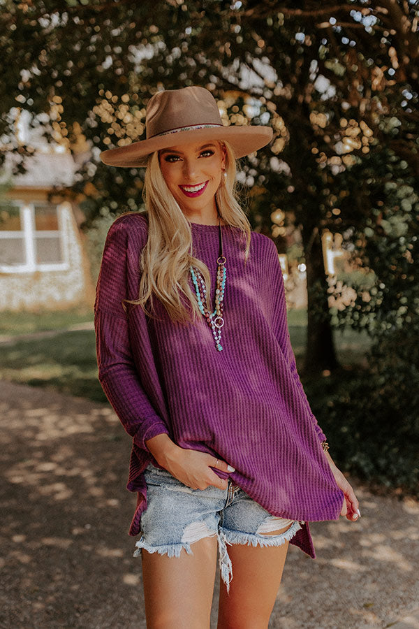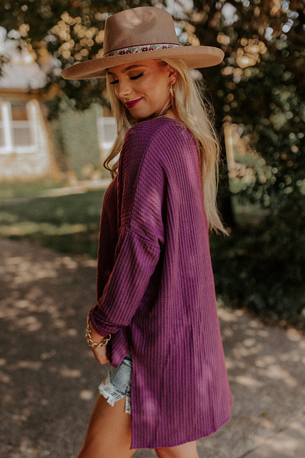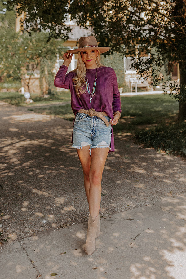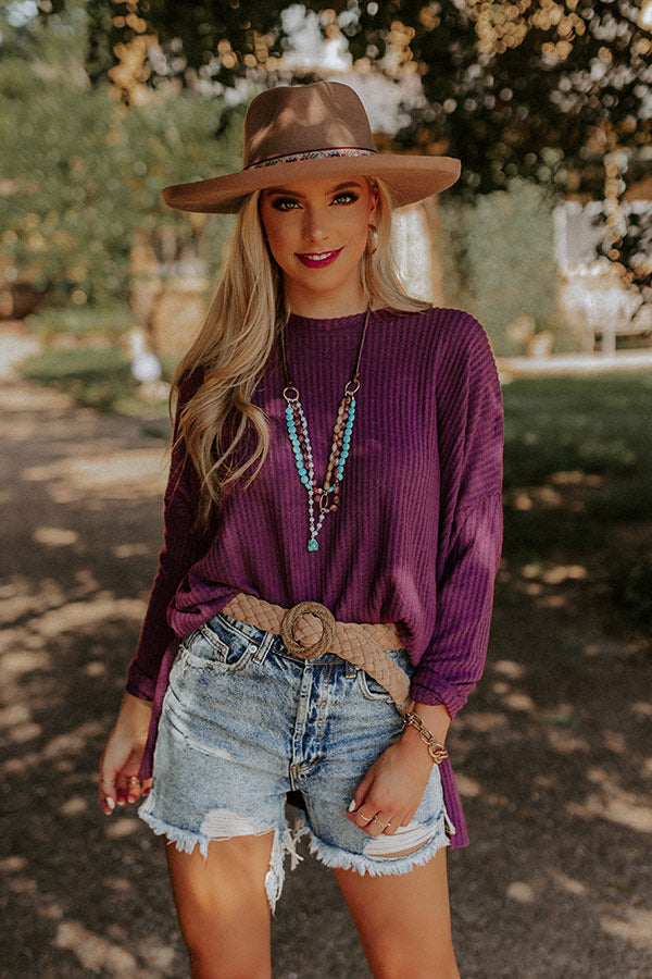 Upgrade your fall basics with our simple but stylish purple 'Put You First' top featuring lightweight material with waffle knit texturing, a rounded neckline, long sleeves, and an ultra draped silhouette that falls into a straight tunic-length high/low hemline with accent side slits!