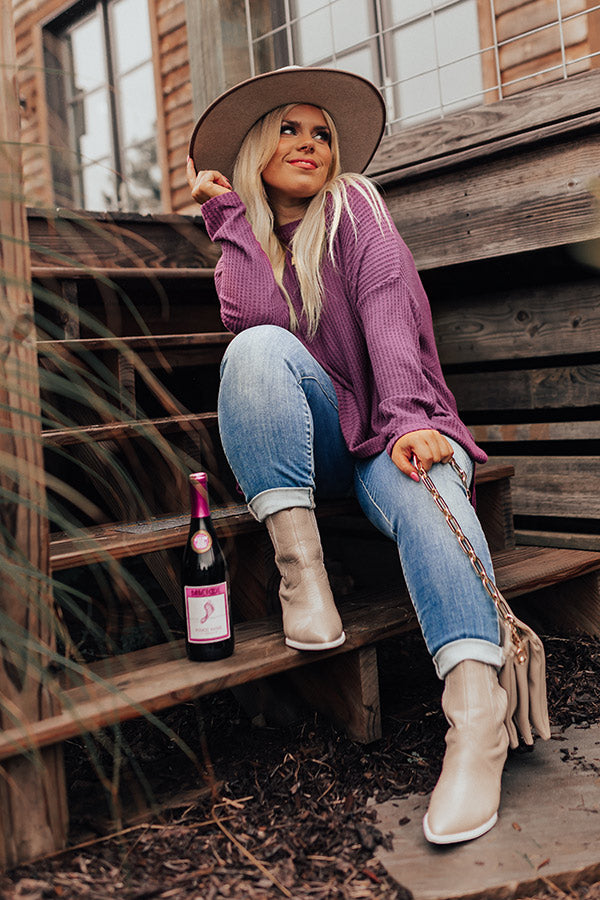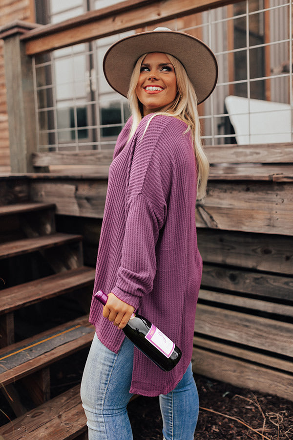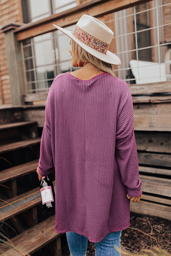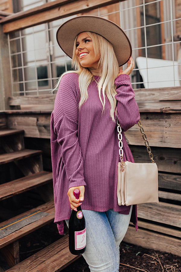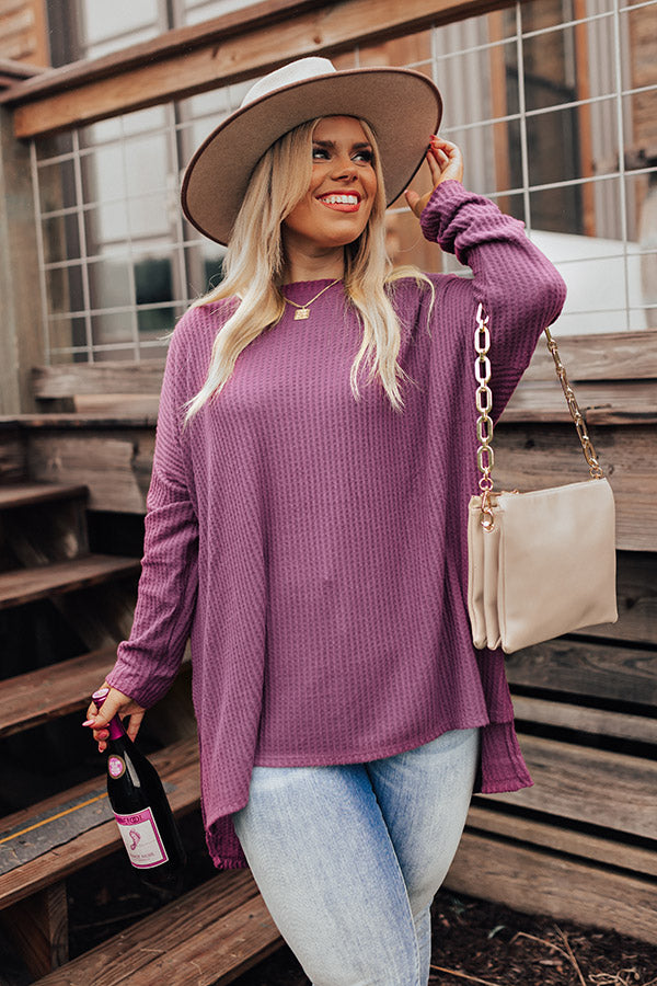 Upgrade your fall basics with our simple but stylish purple plus size 'Put You First' top featuring lightweight material with waffle knit texturing, a rounded neckline, long sleeves, and an ultra draped silhouette that falls into a straight tunic-length high/low hemline with accent side slits!