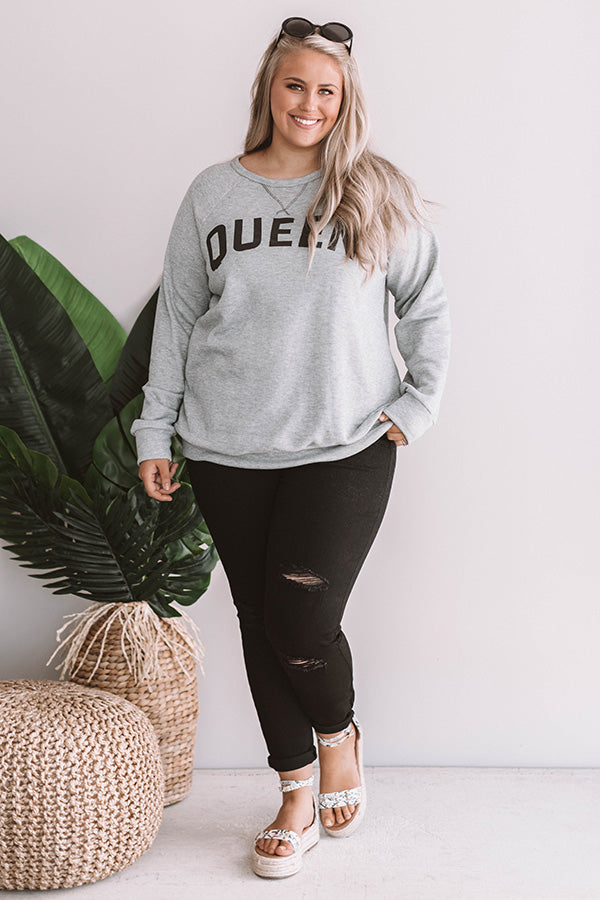 Plus Size - Be the "queen of everything" in this comfy and contemporary sweatshirt! Thick knit shapes this graphic sweatshirt with a classic seamed crew neck, long sleeves, fitted cuffs and relaxed hem.