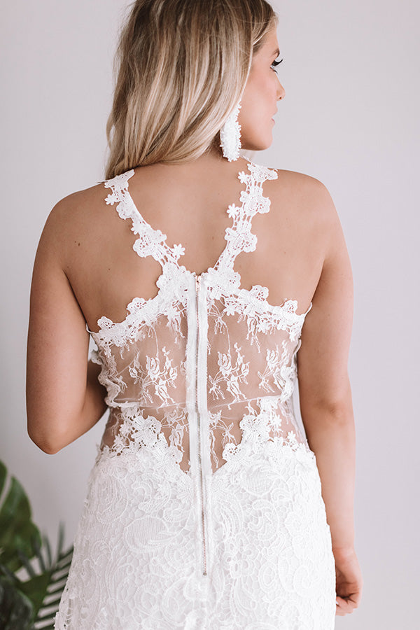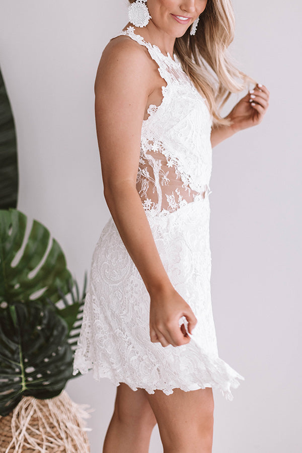 Have all eyes on you in this amazing crochet laced dress! This cutie has a sleeveless fitted bodice, flirty flutter skirt & sassy sheer accents throughout that are sure to steal the show. Take on your next formal event in this luxe look!