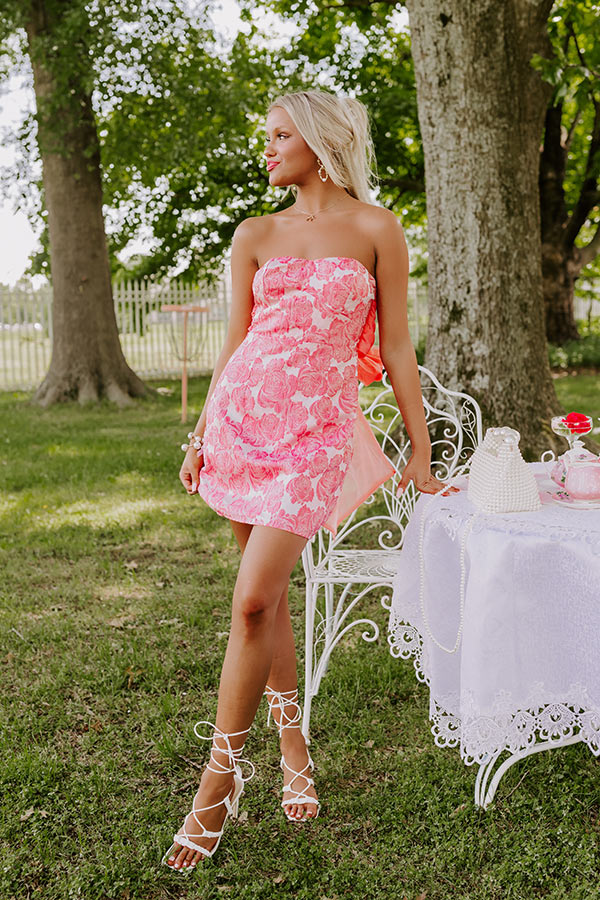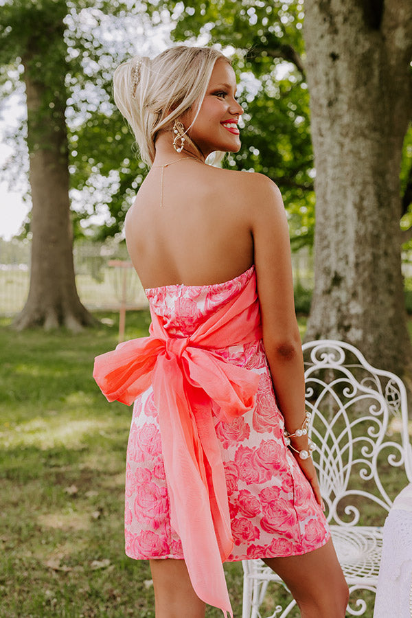 - Radiate sunny style with this gorgeous mini dress! Beautiful floral material and a trendy accent bow make it a perfect romantic statement piece. Pour tea for two and steal hearts with this fabulous dress.
