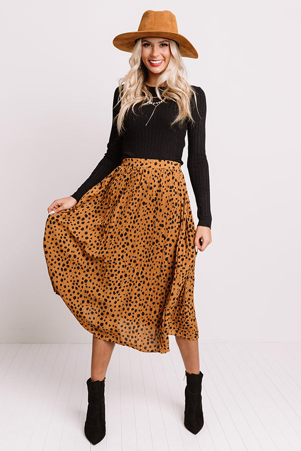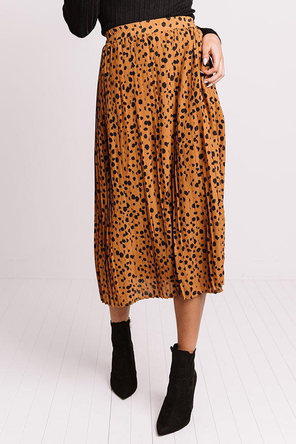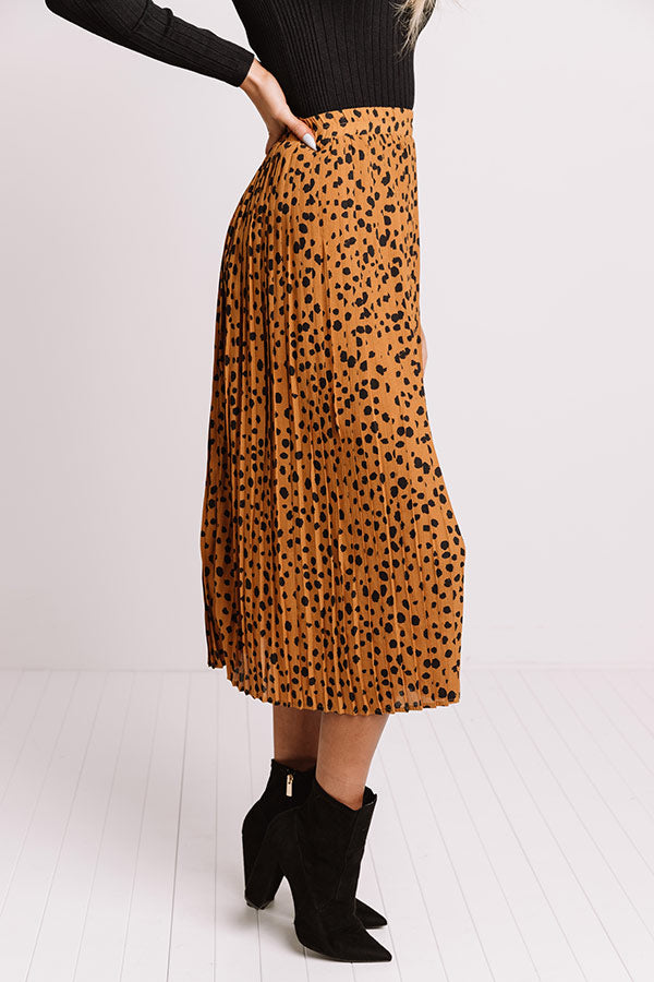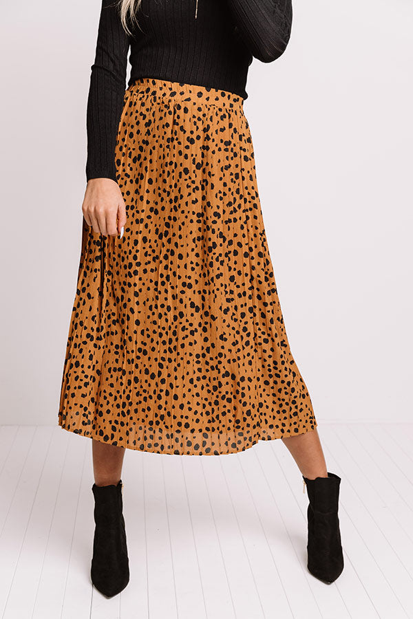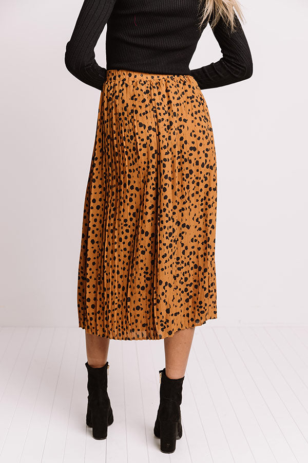 Raise A Glass Leopard Pleated Skirt In Mustard