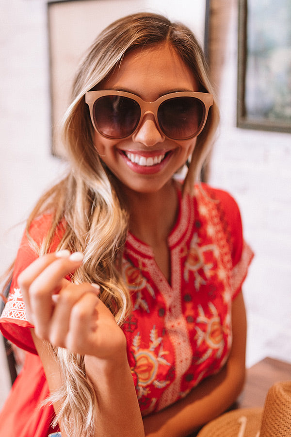 You are sure to be your own "ray of light" when you accessorize with these adorable sunnies featuring rounded iced latte colored frames and dark tinted lenses!