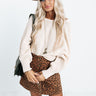 Reach for the moon in this simple but stylish cream colored sweater featuring soft knit material with horizontal ribbed texturing, a rounded neckline with a flirty lace up back, long loose sleeves, and a slouched silhouette that falls into a straight hemline!