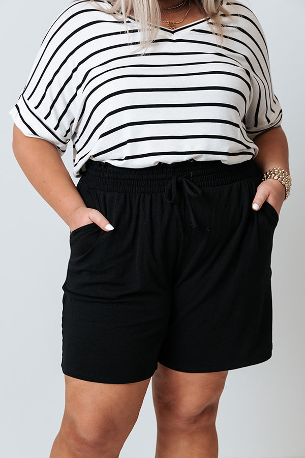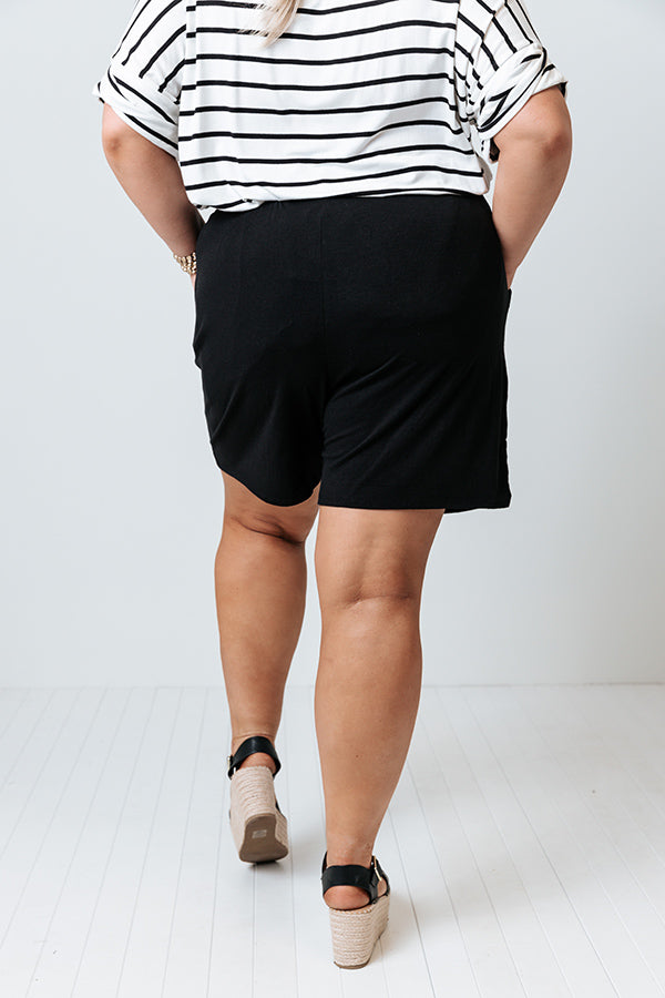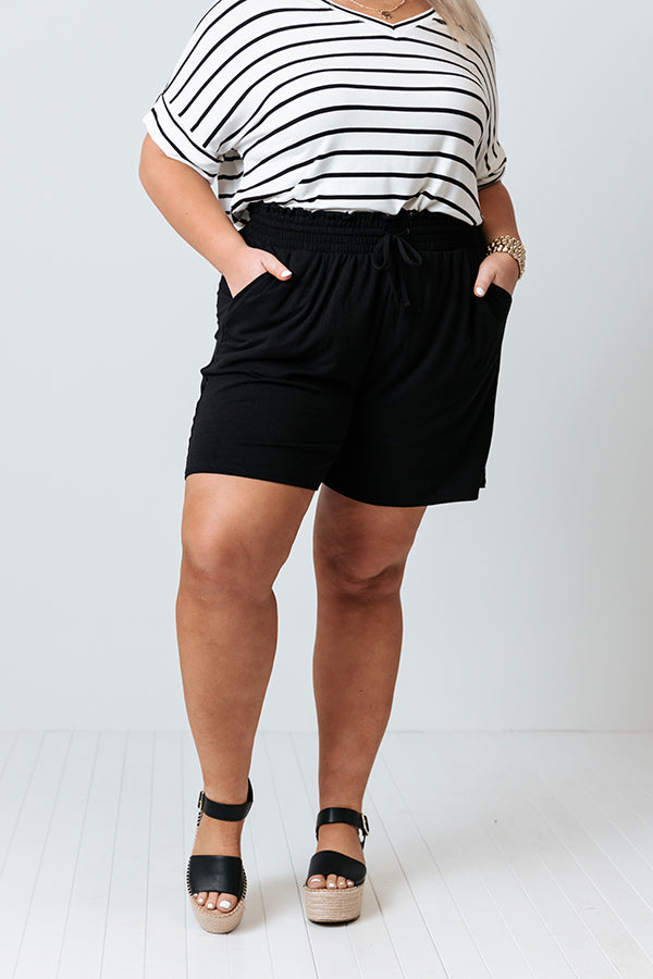 Plus Size - You won't find a more basic yet versatile summer piece than our simple black 'Ready For Aughts Shorts' featuring lightweight flowy material, an elastic waistline with a tie closure, accent side pockets, and a relaxed silhouette that ends in a straight upper-thigh length hemline! Measurements