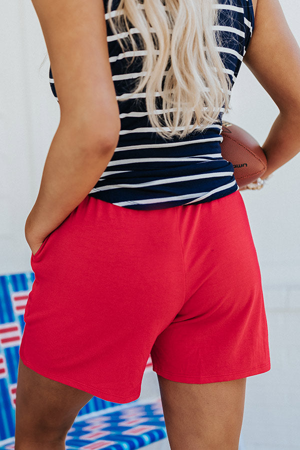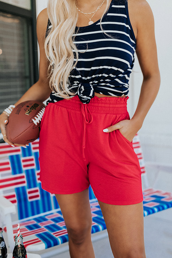 You won't find a more basic yet versatile summer piece than our simple red 'Ready For Aughts Shorts' featuring lightweight flowy material, an elastic waistline with a tie closure, accent side pockets, and a relaxed silhouette that ends in a straight upper-thigh length hemline! Measurements