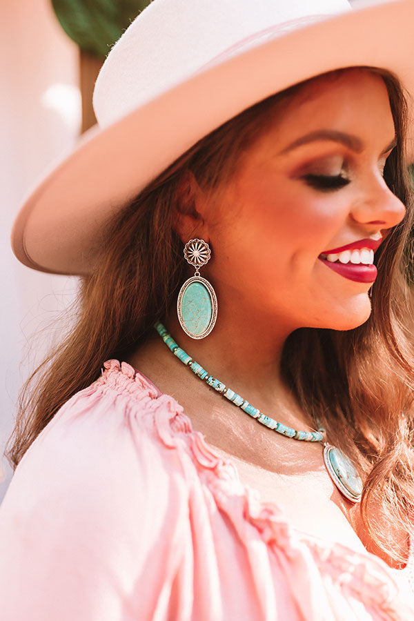 Get ready for fall in style with these adorable statement earrings featuring vintage silver flower studs and large dangling turquoise oval pendants!