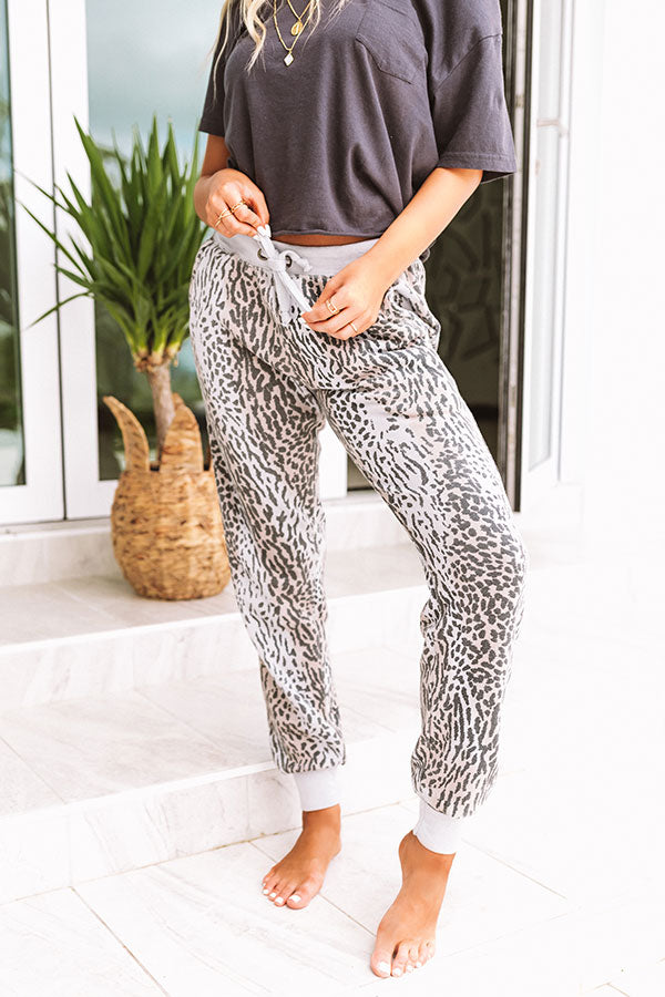 "Ready, set, relax" in these gorgeous joggers featuring soft lightweight material patterned with a bold black and subtle neutral hued leopard print, an elastic waistline with a tie belt, accent side pockets, and a relaxed pants silhouette that falls into fitted ankle length hemlines! This comfy piece styles perfectly with our matching "Ready, Set, Relax Leopard Hoodie," a scrunchie, and some fuzzy slippers for the ultimate two piece lounge look! Measurements