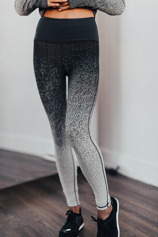 Our sporty "Ready, Steady, Chic" active legging features soft four way stretch material with a figure hugging fit, moisture wicking, a speckled black to white ombre pattern, a high elastic waistband for tummy control, and a sleek pant silhouette that falls into straight ankle length hems! This adorable athleisure piece styles perfectly with our black "Ready, Steady, Chic Shift Sweatshirt" and trendy sneakers for the ultimate two piece workout set!