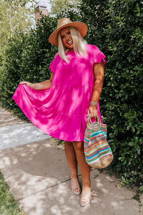 Ready To Party Babydoll Dress In Hot Pink Curves