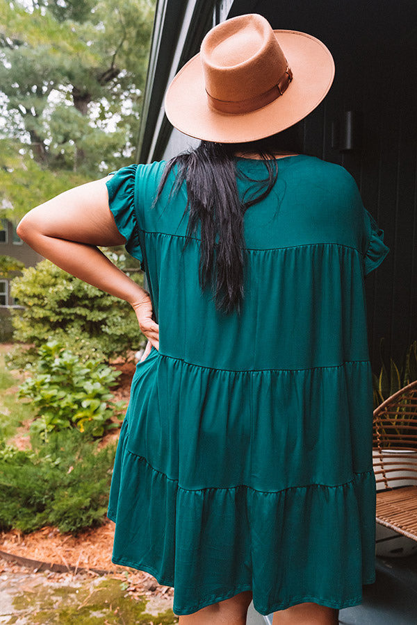 Ready To Party Babydoll Dress In Hunter Green Curves
