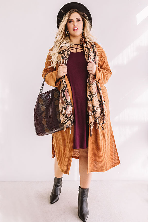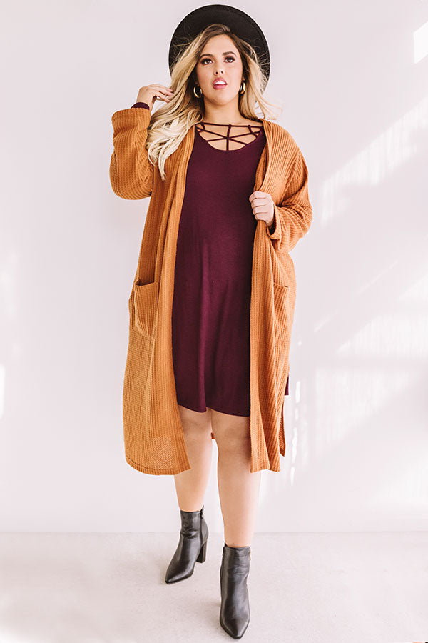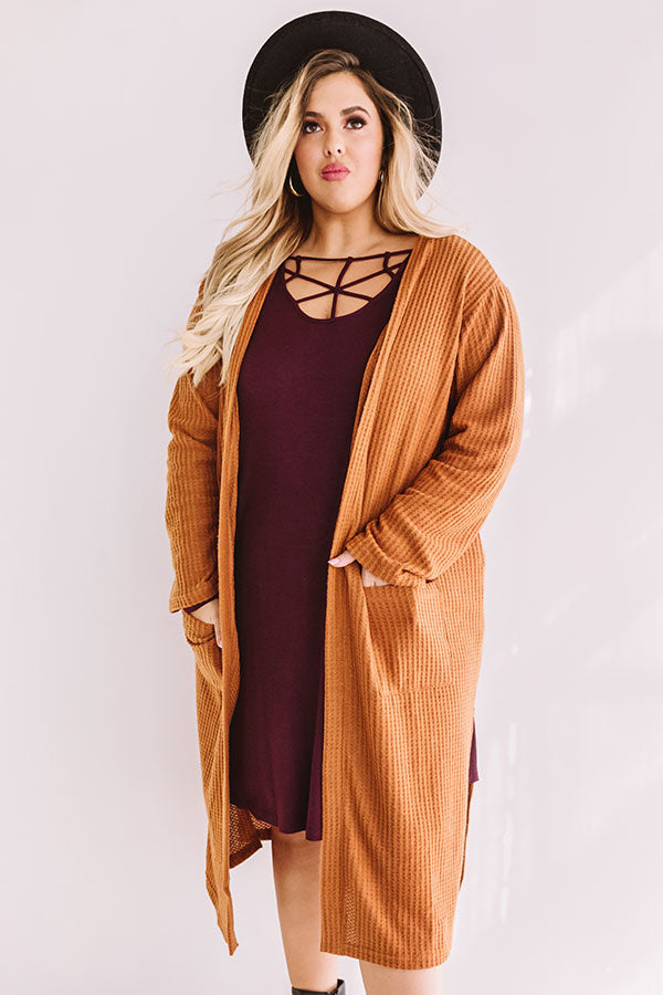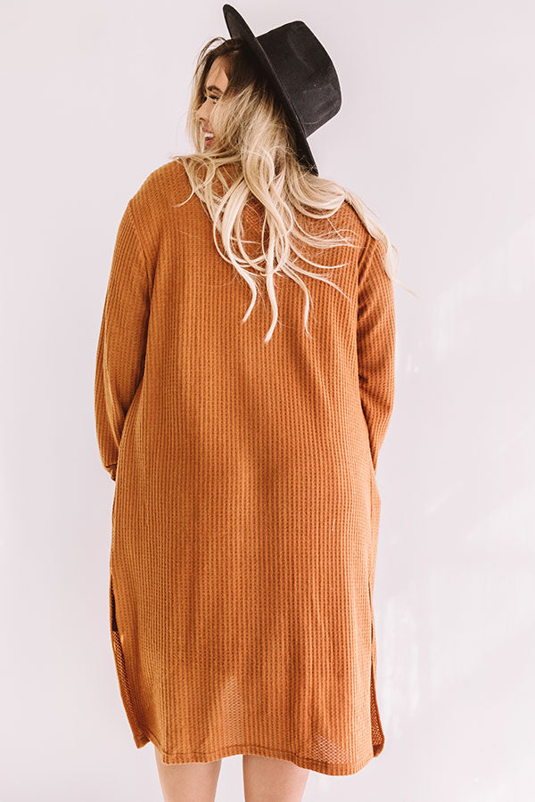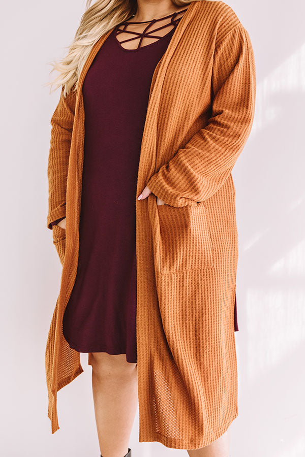 Ready To Rendezvous Waffle Knit Cardigan In Copper Curves