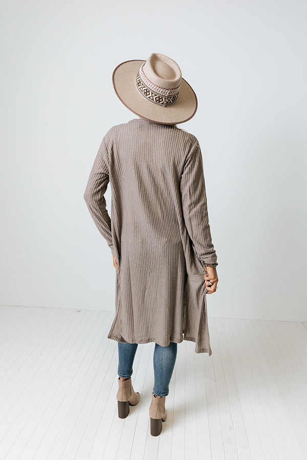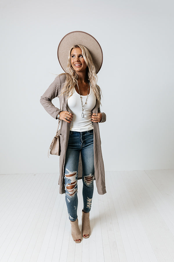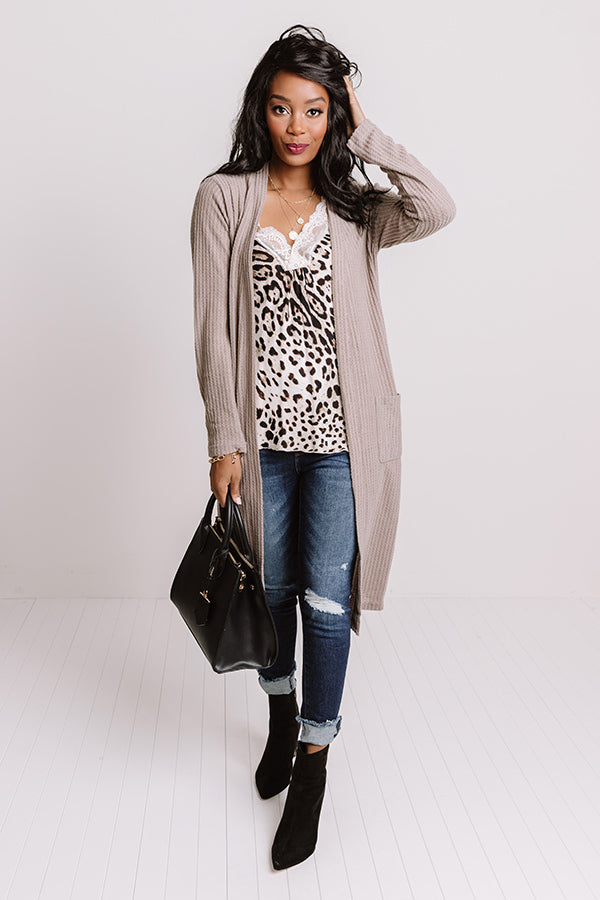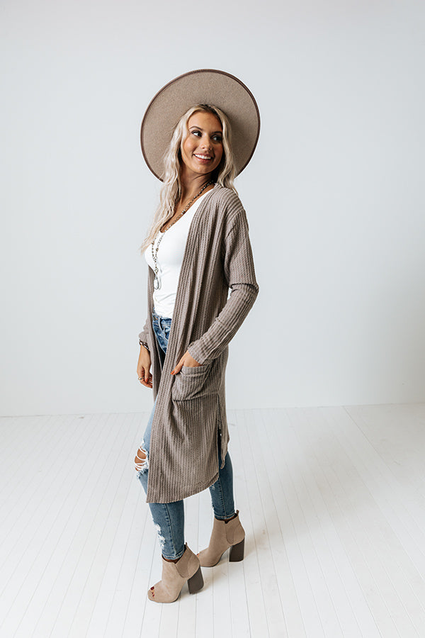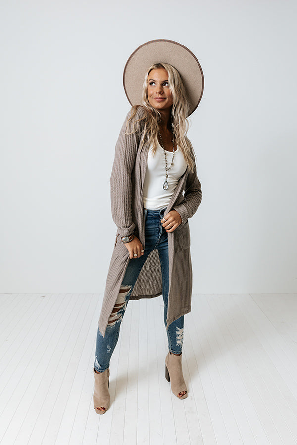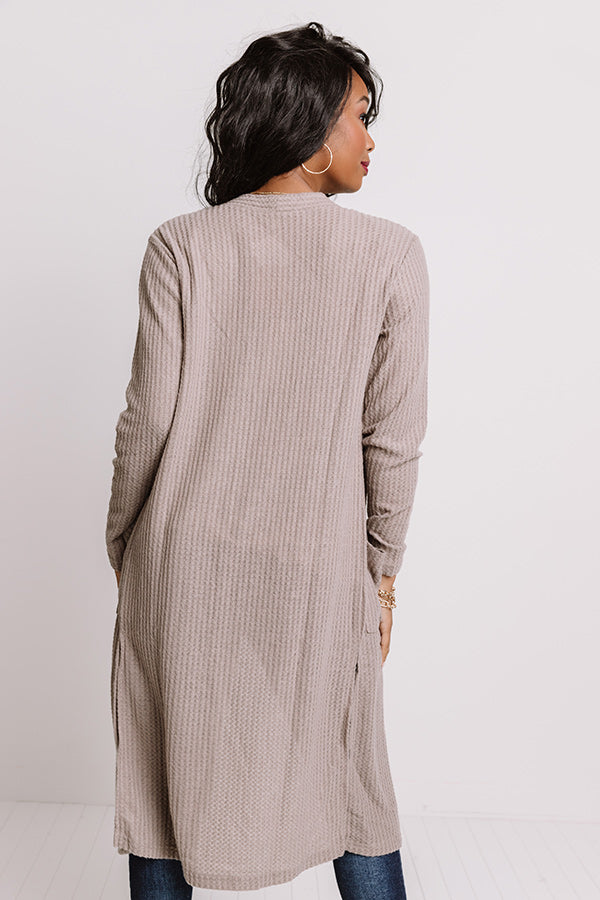 Ready To Rendezvous Waffle Knit Cardigan In Taupe