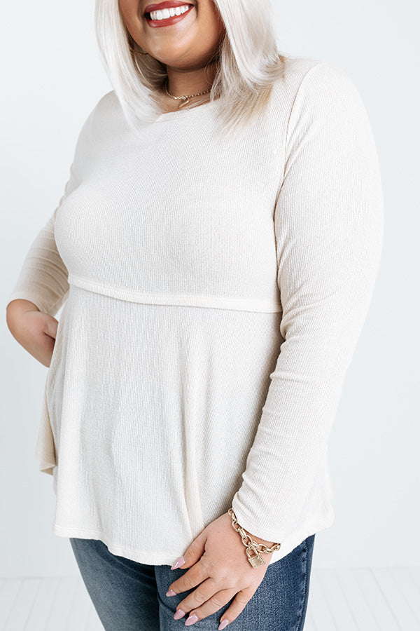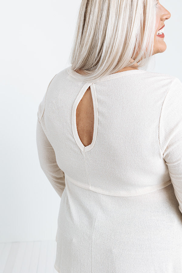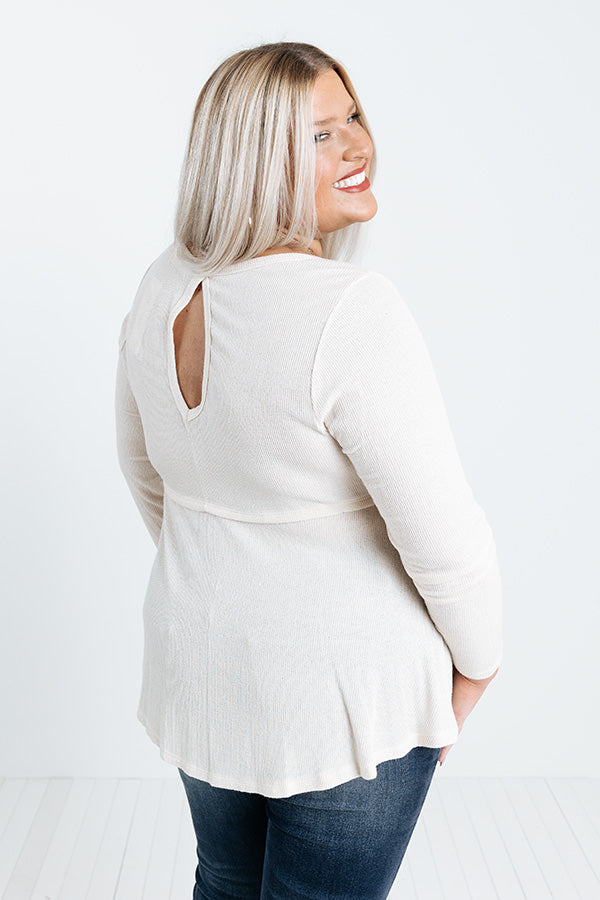 Get ready to roll in this darling plus size cream colored top featuring soft and lightweight material, a rounded neckline, long sleeves, a teardrop cutout upper back, and a relaxed babydoll silhouette that falls into a straight hemline! Measurements