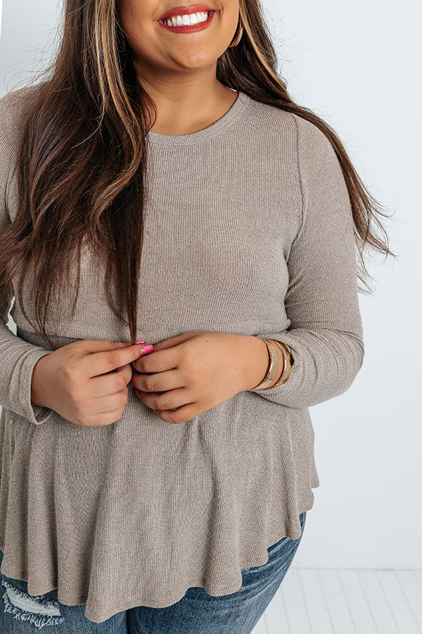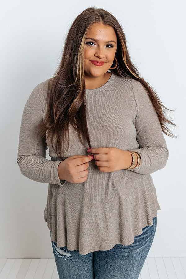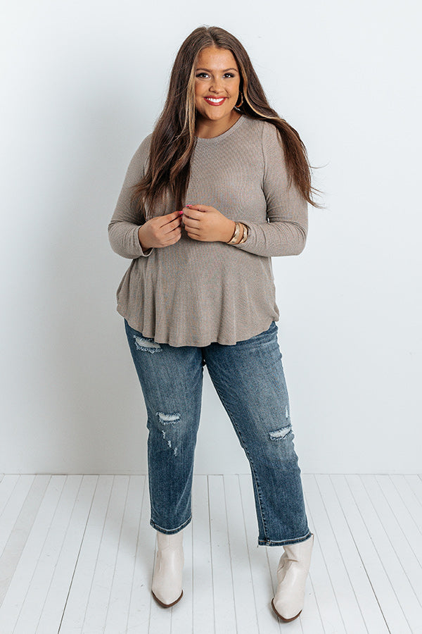Get ready to roll in this darling plus size taupe colored top featuring soft and lightweight material, a rounded neckline, long sleeves, a teardrop cutout upper back, and a relaxed babydoll silhouette that falls into a straight hemline!