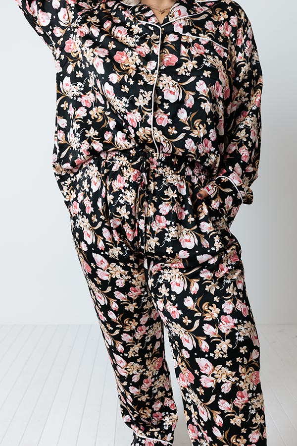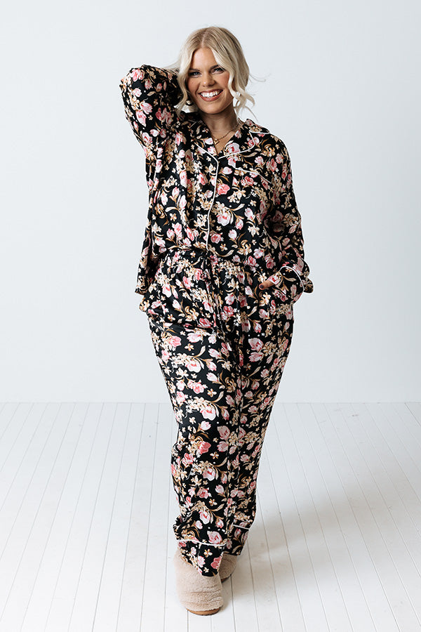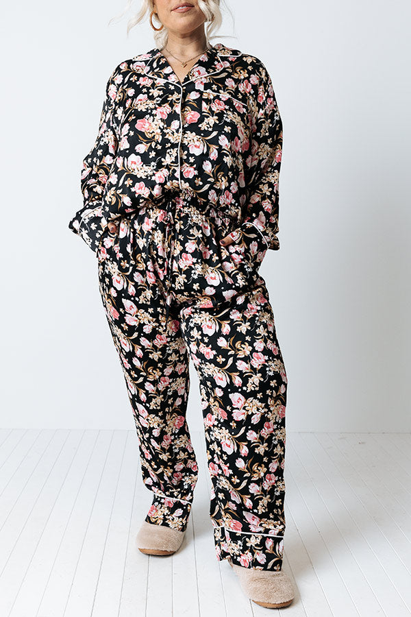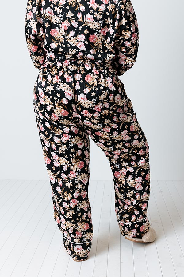 Ready To Wind Down Floral Pants In Black Curves