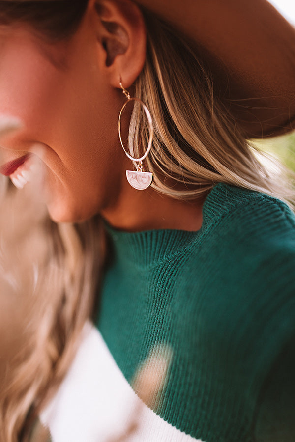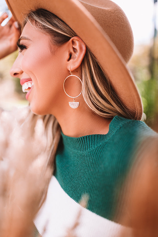 There is no reason you can achieve amazing glam in your "real life" when you accessorize with these adorable statement earrings featuring dainty gold hoops with warm taupe colored half-circle charms!