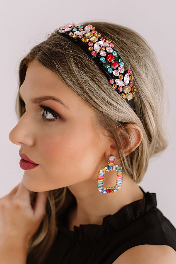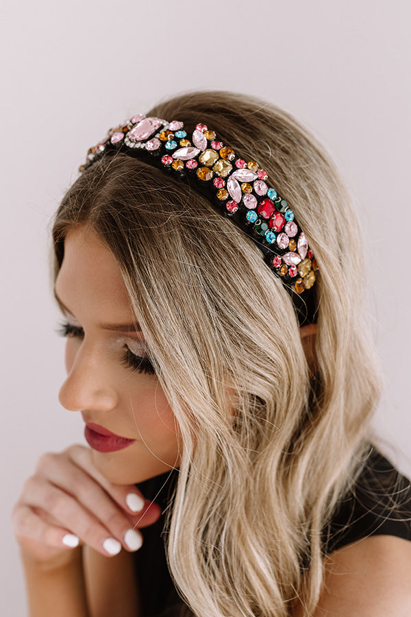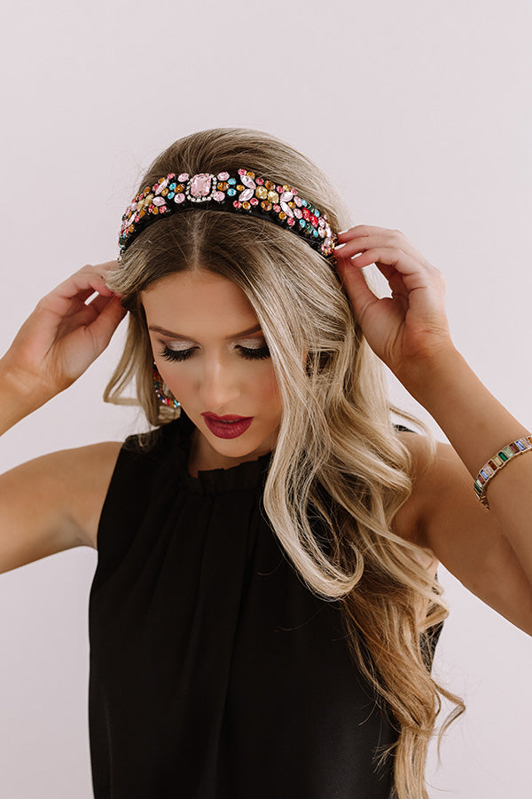 Add some extra glitz to your OOTD with our eye-catching "Real Talk" headband featuring a wide black band with large embellished rhinestones and an open structured silhouette!