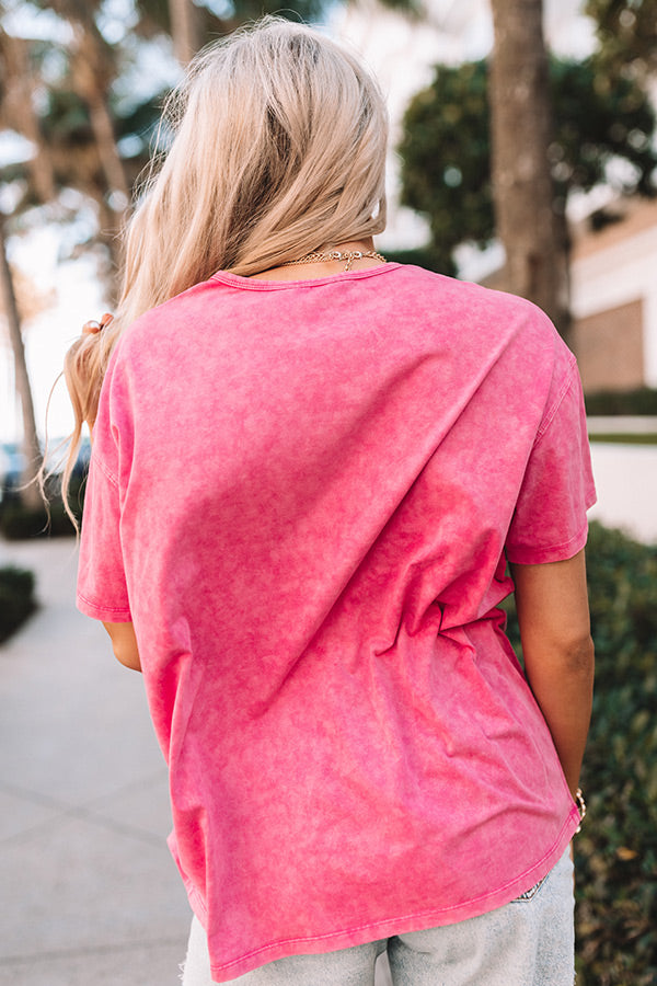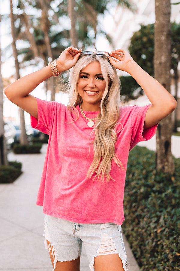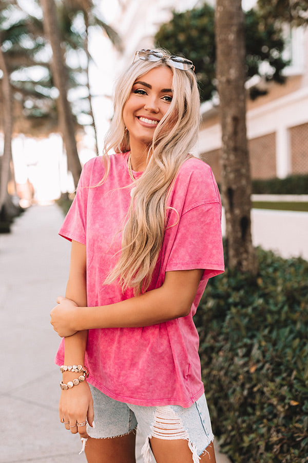 Let your rebel heart run free with this basic hot pink shift tee featuring soft lightweight mineral wash material, a high rounded neckline, short loose sleeves, and a slouched silhouette that ends in a straight hemline!