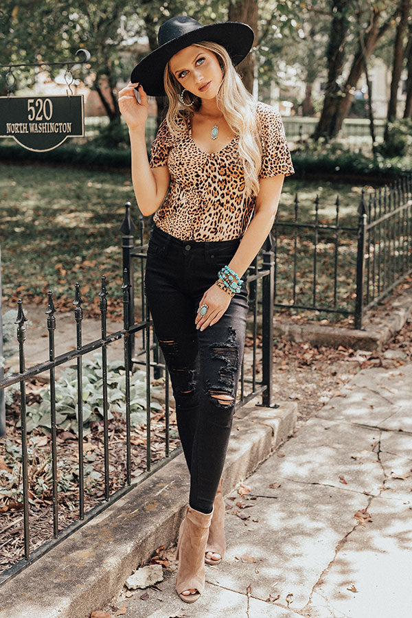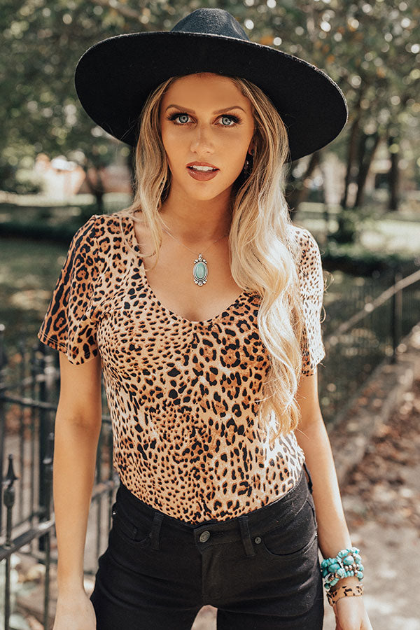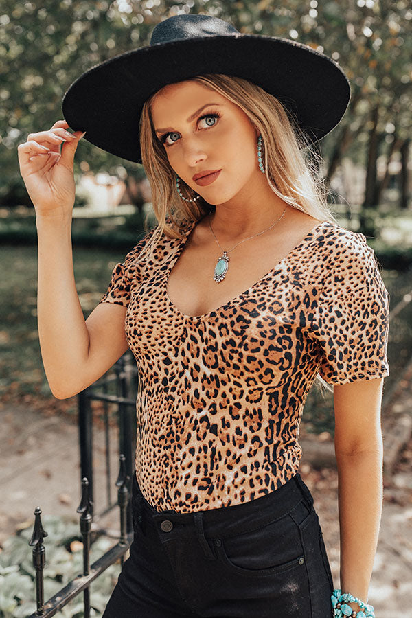 We've got that thing that you like - the purrrfect leopard bodysuit! This chic suit features leopard print, short sleeves, and a scoop neckline on the front and back! Tuck into your favorite pair of black of denim for a look that's weekend ready in an instant! Add our "My Prized Possession" popcorn knit sweater and our "Flight to Frisco Bracelet Set in Turquoise" to make this bodysuit fall-ready! Measurements