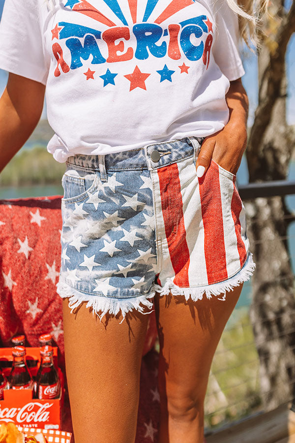 - Non-stretch denim material with a stars and stripes design and subtle fading