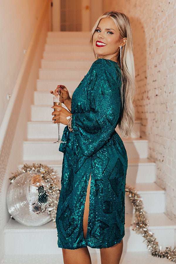 You are guaranteed to look so regal in this elegant plus size duster featuring shimmering teal sequin detailing throughout, loose 3/4-length sleeves, a matching belt, front pockets, and a draped open front silhouette that falls into a straight mid-thigh length hemline with accent side slits!