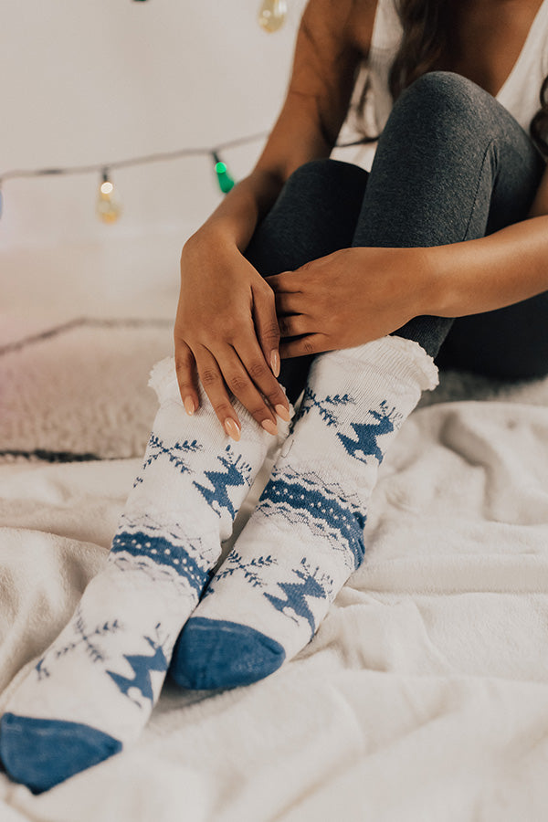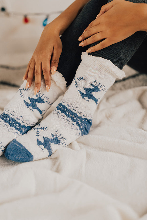 Reindeer Games Sherpa Lined Slipper Socks in Blue