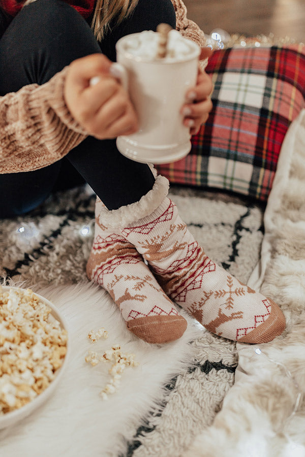 Reindeer Games Sherpa Lined Slipper Socks in Latte