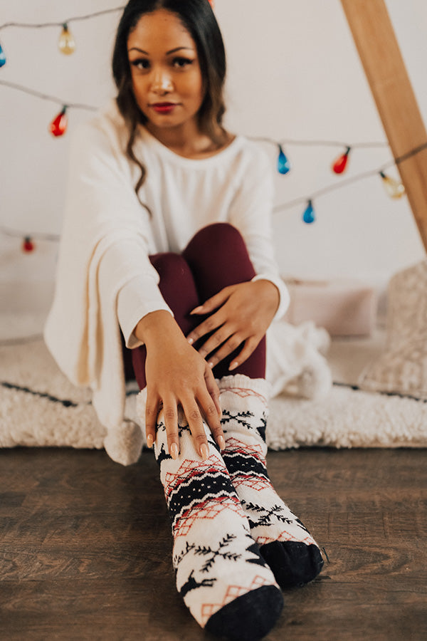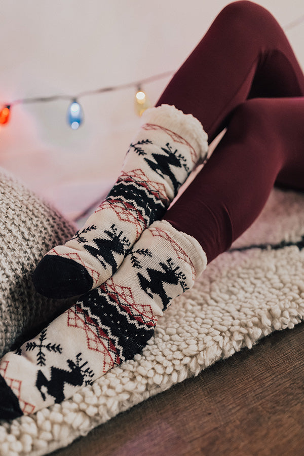 Reindeer Games Sherpa Lined Slipper Socks in Navy