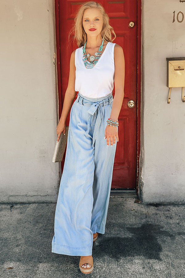 From street style to office chic, the "Relaxed Approach Chambray Pants" are ready to seize any day in style! These chambray pants have a flattering high rise fit with a tie waist, & an ultra relaxed wide leg pant (with side pockets) that can easily be dressed up or down. Style with your favorite pair of wedges & a basic white tank, for a chic retro-inspired look that is sure to score you compliments everywhere you go!