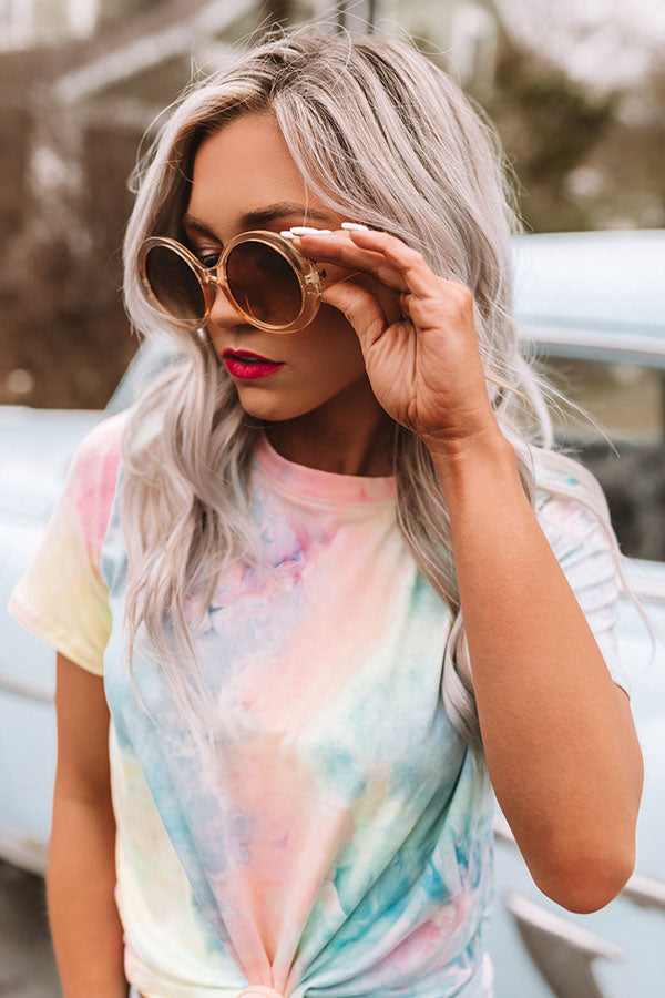 You won't find a better accessory to wear while "relaxing poolside" than these adorable sunnies featuring rounded champagne translucent frames, wide earpieces, and dark brown tinted lenses!