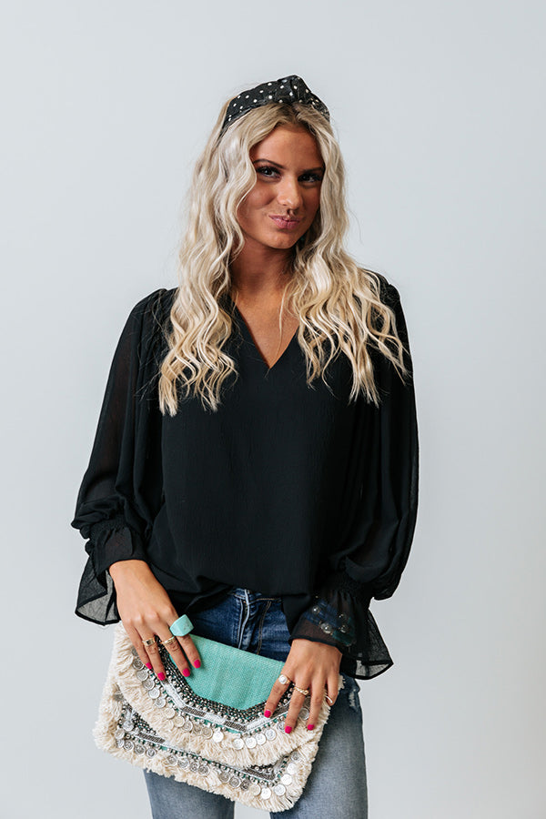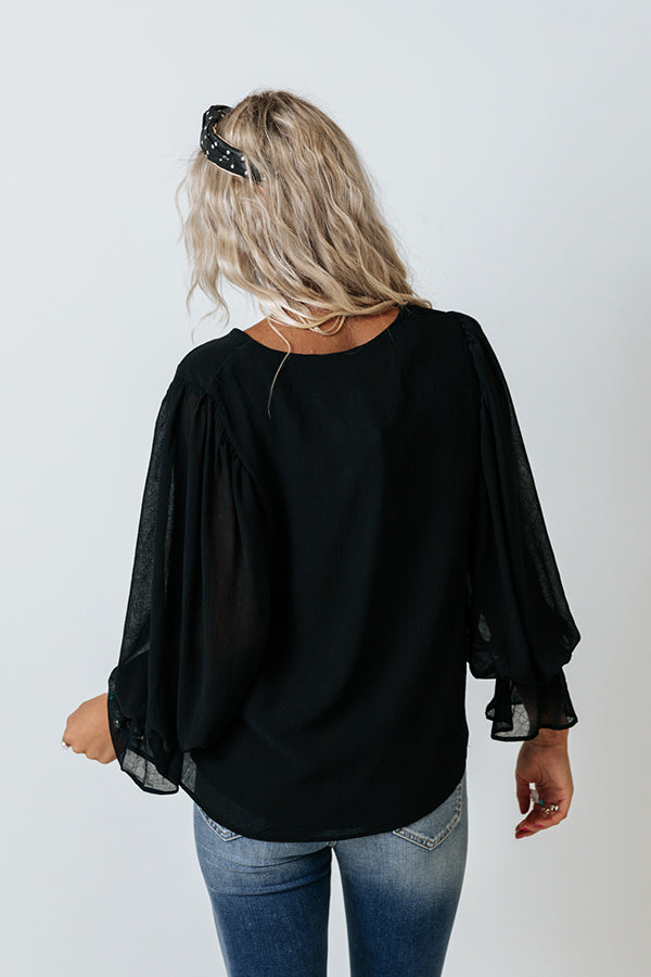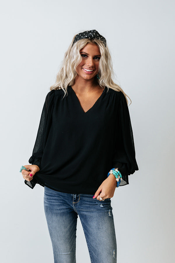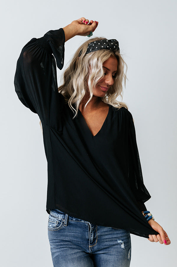 We have no doubt you will remember the major style moment you have when you complete your look with this cute black shift top featuring lightweight material, a v-cut neckline, long bishop sleeve with flared cuffs, and a relaxed silhouette that falls into a straight hemline! Measurements