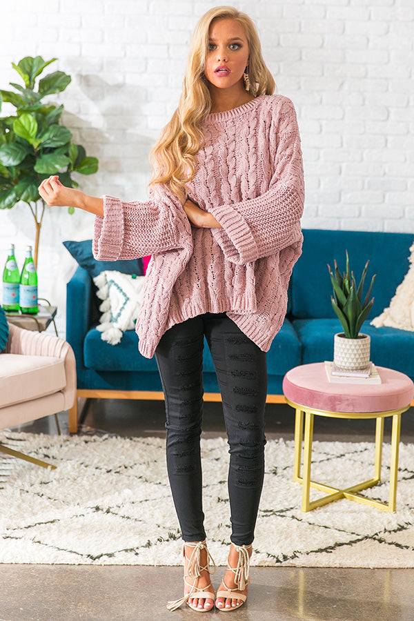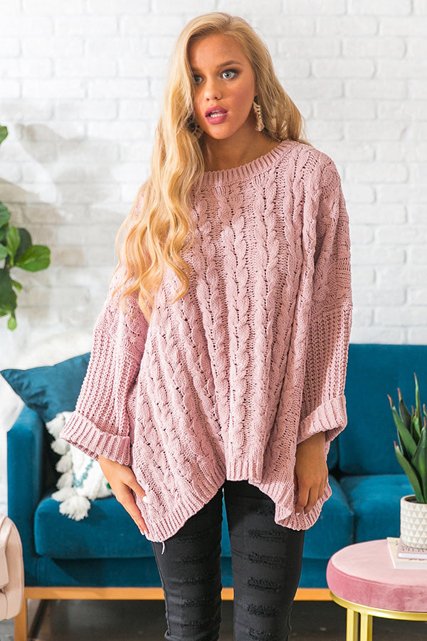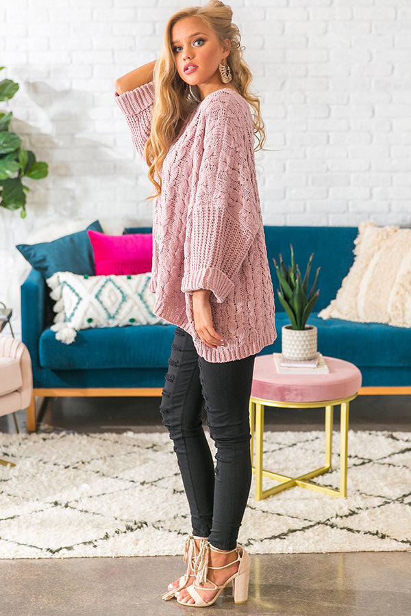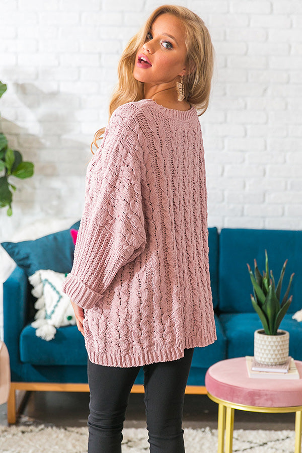 Retreat To The Alps Cable Knit Sweater In Blush