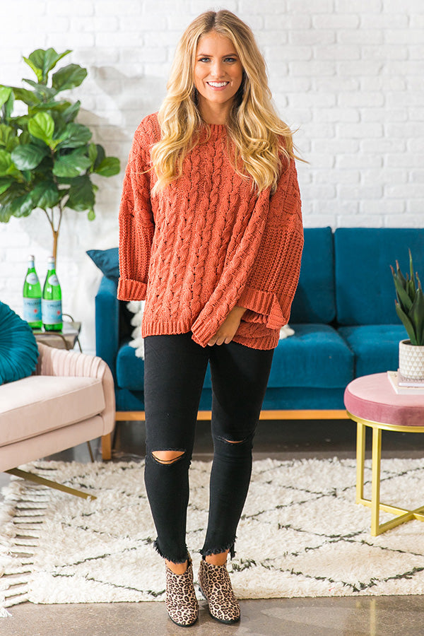 This cozy cable knit sweater has us wanting to retreat to The Alps (or Aspen) ASAP! The "Retreat To The Alps Cable Knit Sweater" has ultra cozy wide-cut cuffed sleeves & a snuggle-worthy chenille cable knit bodice that is as comfy as it is cute. Just add denim, a great statement earring & a cute pair of booties, for a "cozy cute" look that deserves to be snuggled up by the fire at a fabulous 5-star resort watching the snow fall & sipping on a glass of merlot.