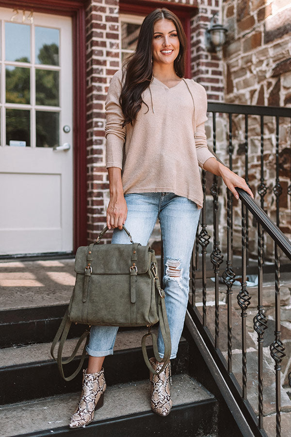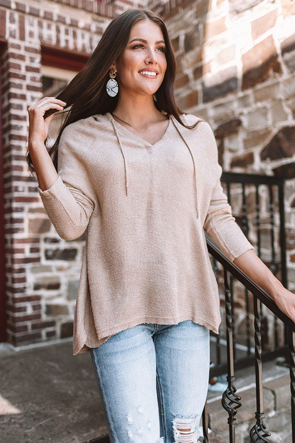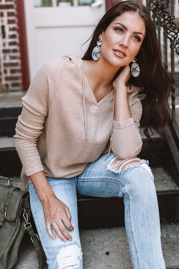 This lightweight knit hoodie is giving us all the cabin retreat vibes with its soft knitted material, v-cut neckline with a drawstring hood, long sleeves, subtly frayed rounded hem, and a lightweight knit bodice that is easy to throw on and go! Style this hoodie with distressed denim, leopard booties, and a backpack to grab brunch with the girls, or trade your booties in for sneakers and your backpack in for a tote to run errands around town!