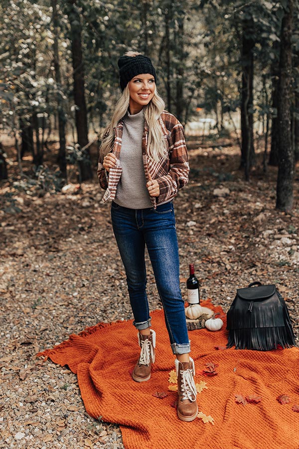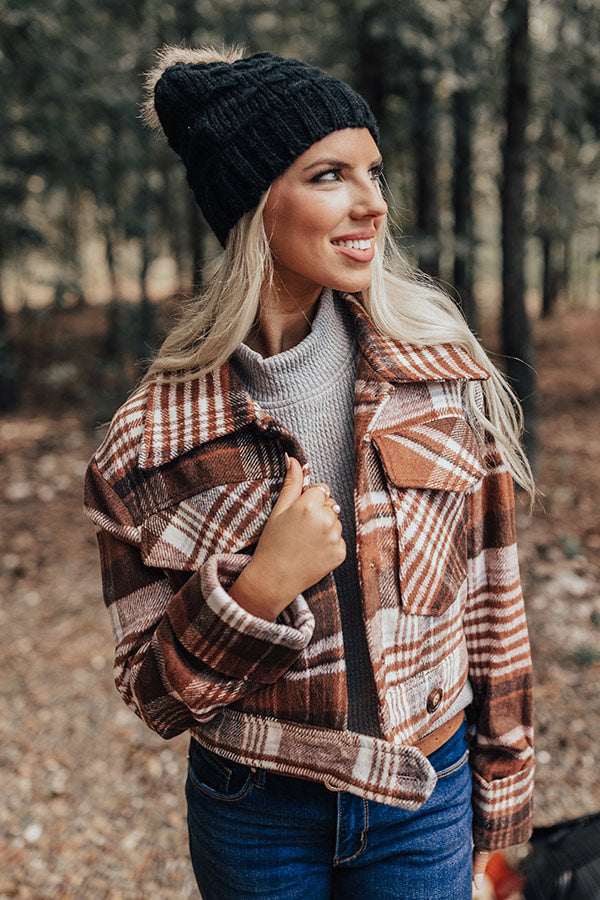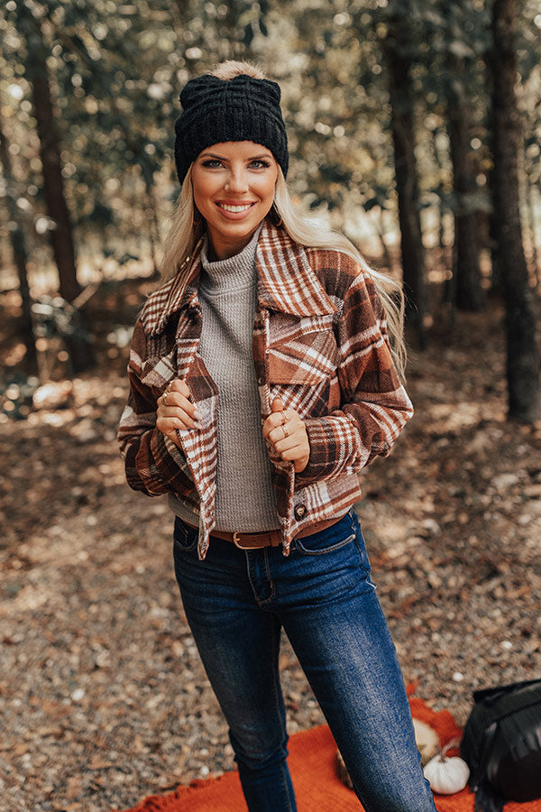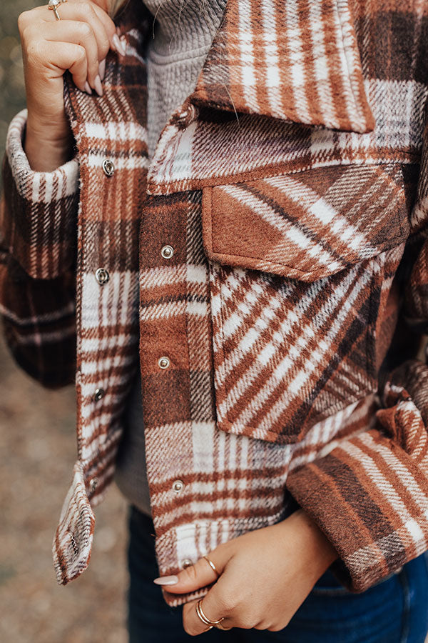 Layer up effortlessly with our adorable 'Reveal Your Love' jacket featuring thick and warm material patterned with a brown, camel, and white hued plaid print, a snap button down front with a collared neckline, long loose sleeves, two accent chest pockets with flap closures, and a relaxed silhouette that ends in a straight hemline with a button closure! Measurements