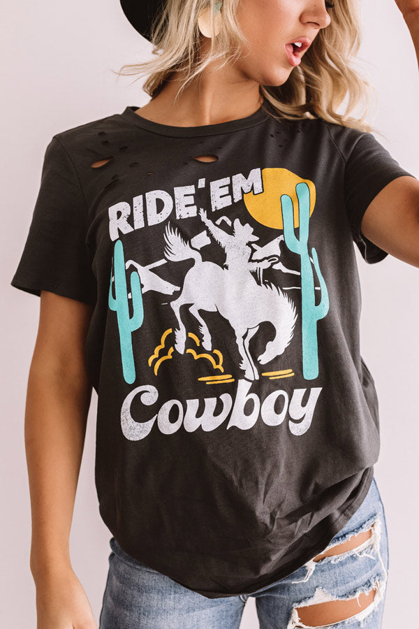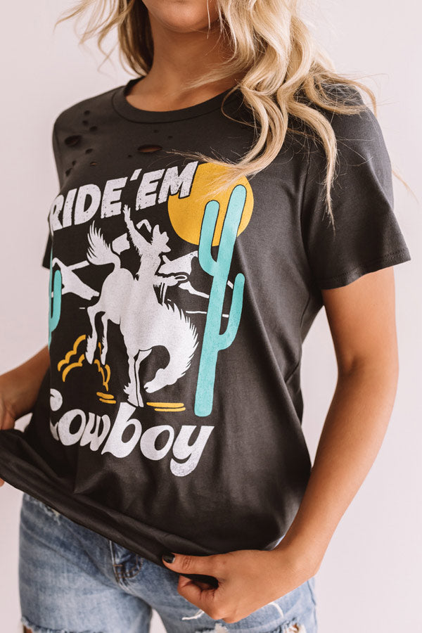 Ride'em Cowboy Distressed Boyfriend Tee In Black