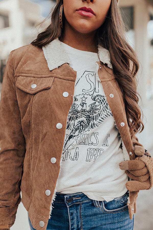 Layer up for winter in style with our neutral hued "Right On Time" corduroy jacket featuring lightweight material with ribbed texturing, long loose sleeves with fitted button closure cuffs, two accent chest flap pockets, a collared neckline, ultra soft faux fur lining, and a relaxed button up silhouette that falls into a straight hemline! You can layer this ultra warm and versatile piece with just about anything from a basic tank to a sweater, jeans to skirts or dresses, booties to wedges or sandals, clutches to totes, and hats to earrings! Measurements