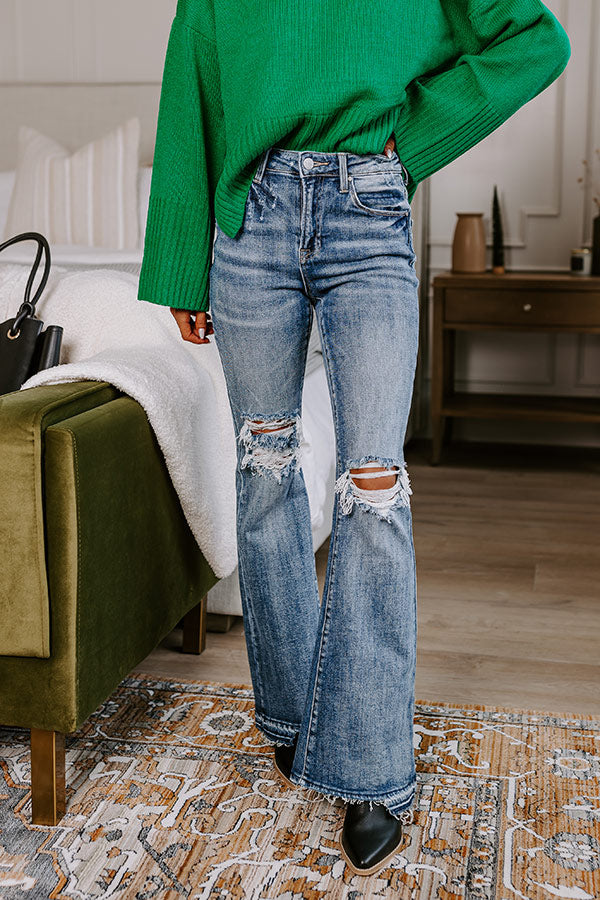 Risen The Sequoia High Waist Distressed Flare in Dark Wash