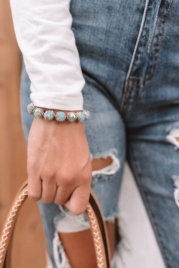 Stay "ritzy in San Francisco" with this elastic fit statement bracelet featuring turquoise circle beads with silver accents!