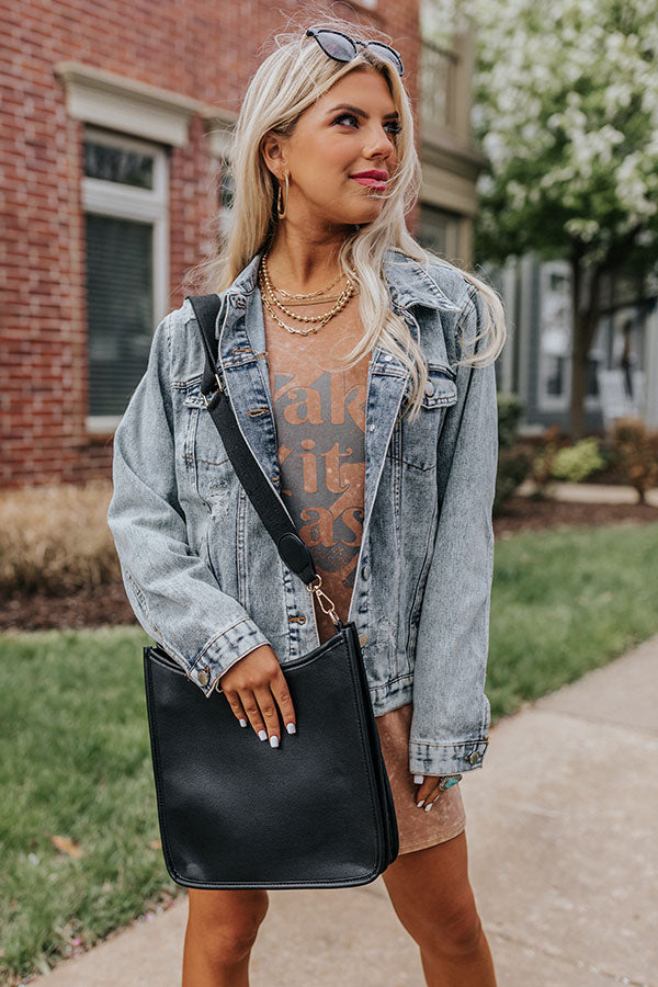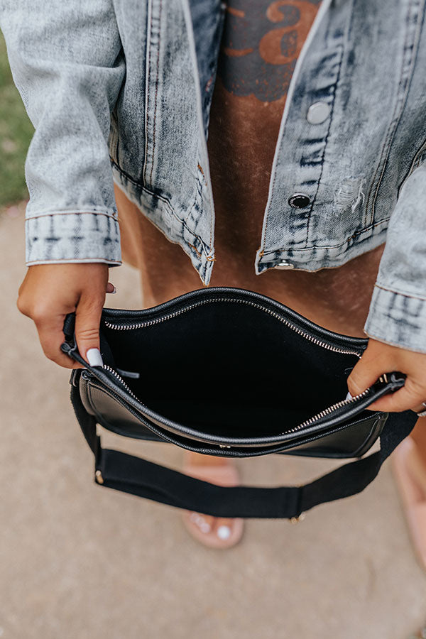 Finish off your look the best way with our fashionable black 'River Bend' crossbody featuring faux leather material, an additional outside pocket, a removable and adjustable shoulder strap, and a fully lined square shaped pouch with a zip closure!
