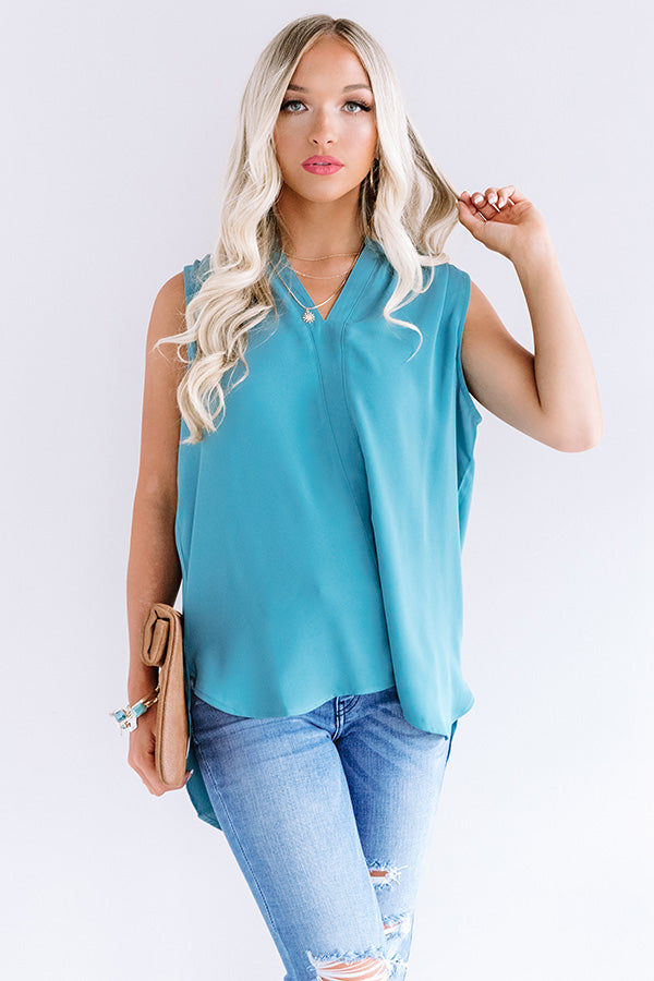 Stand out in our elegant teal "Riverside Romance Shift Top" featuring lightweight material, a high v-cut neckline, short cap sleeves, accent pleats on the upper back, and a relaxed silhouette that falls into a rounded tunic length hemline! This chic piece can be styled a variety of ways, like with some distressed ankle skinnies and a brown block heel and clutch, or it can be worn with some frayed white shorts, "The Brighton Espadrille in Grey," and our "Under The Italian Sun Hat in Grey!" Measurements